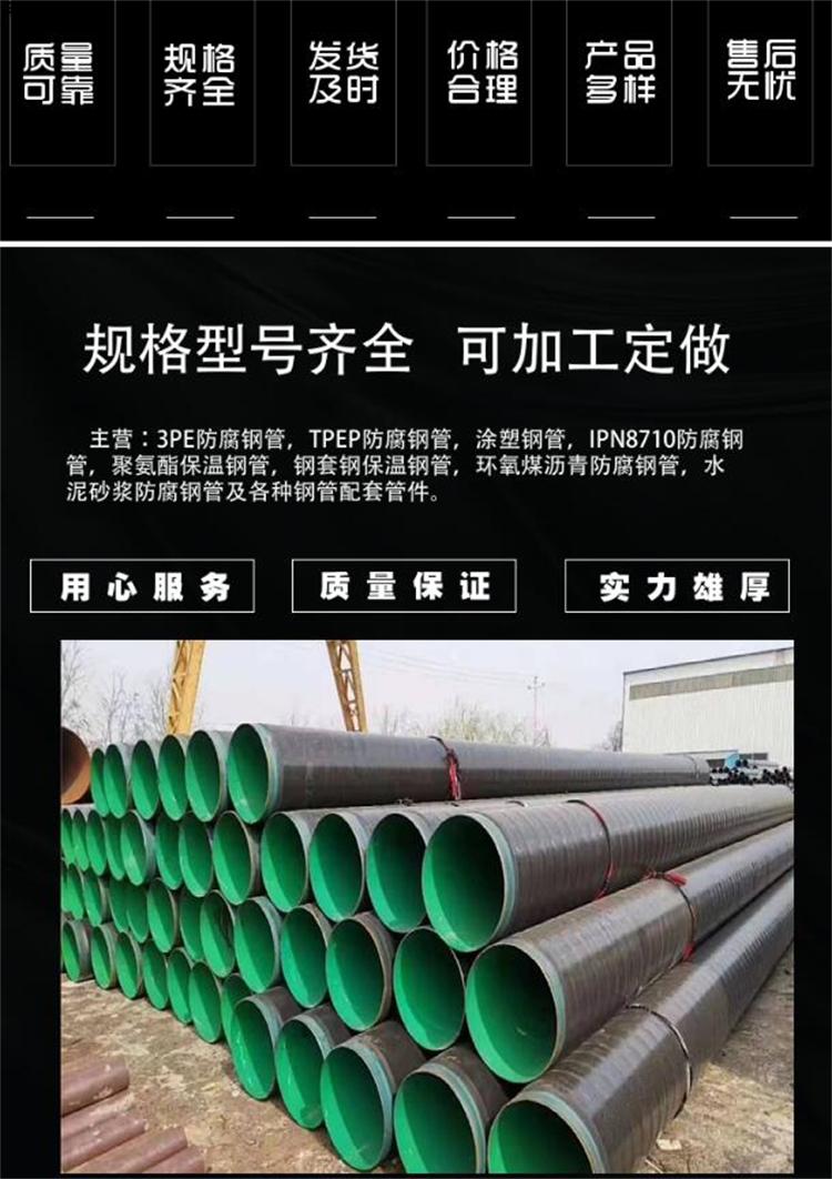 另可根据客户订做二布三油、布四油等各类类型钢管。 二布三油就是在做好的基层面上涂层油,然后铺层布,在布上再涂层油,再铺层布,布表面再均匀涂抹层油,这样形成二层布三层油的防水层。 注意:涂完后层油待油干燥后,必须抹保护层,然后再做其他面层。